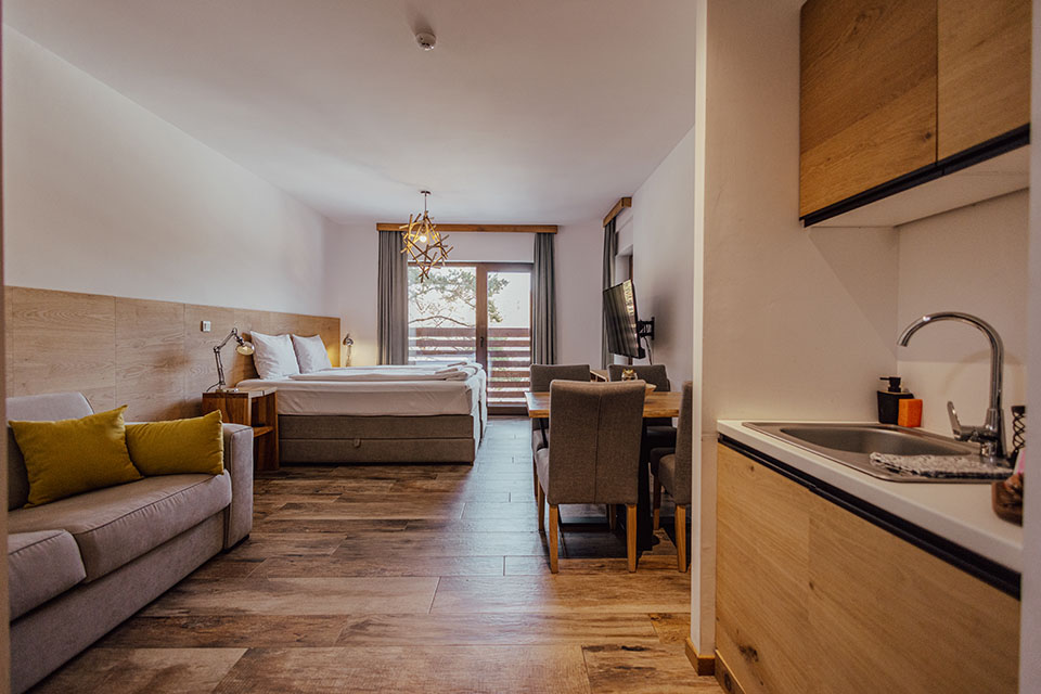 Occupancy: Ideal for 1–2 guests. Can accommodate 3 guests, with the third sleeping on the sofa bed.